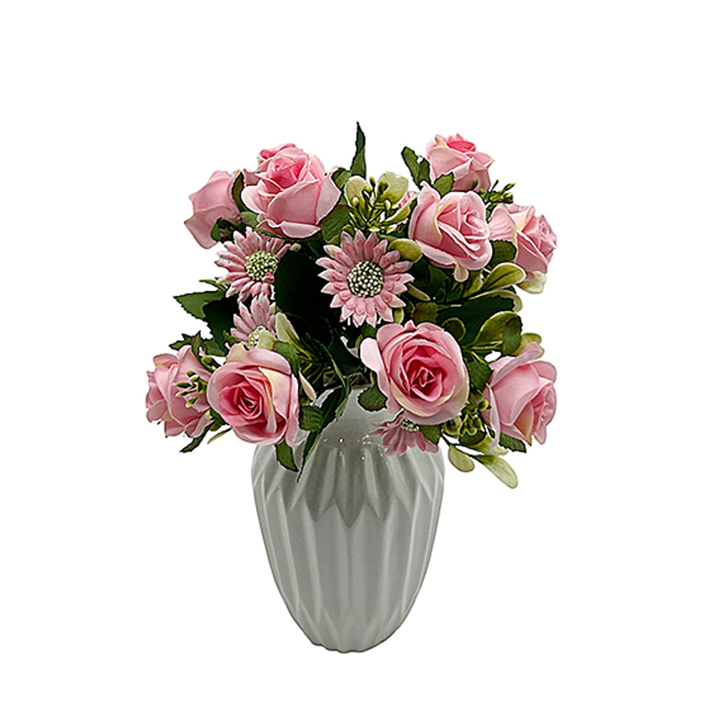El ramo tiene: 10 rosita y 5 margaritas